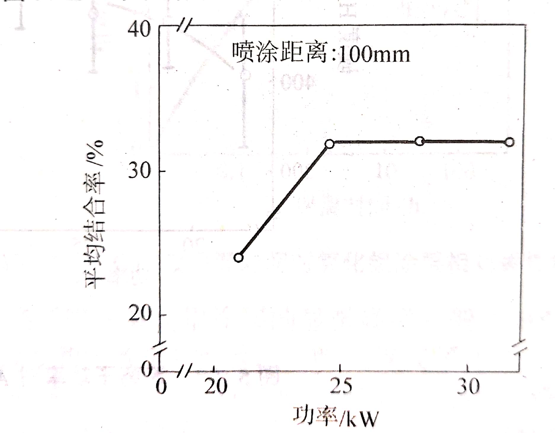 圖(4)等離子功率對(duì)氧化鋁涂層粒子間結(jié)合率的影響