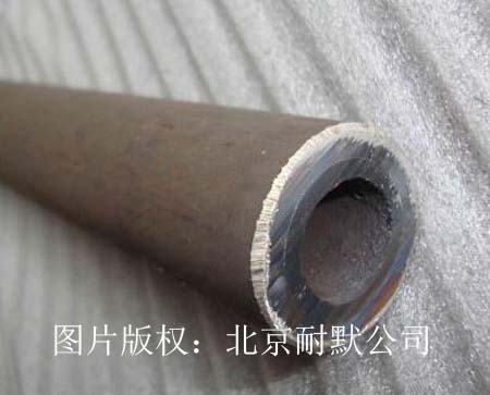 該反應放出的巨大熱量可使體系絕熱溫度高達3753K,此時產物Al2O3和Fe均處于熔融狀態。由.于產物的密度不同且潤濕性差而互不相溶,因此,在燃燒合成過程中處于液相狀態下的Al2O3和Fe在重力作用下會逐漸分離。隨著反應燃燒波的移動及受冷卻過程負溫度梯度的作用,熔點較高的Al2O3便沿著鋼管內壁結晶凝固,附著在內壁形成連續的氧化鋁基陶瓷涂層,Fe液及剩余熔融物則作為殘渣流出管外。
